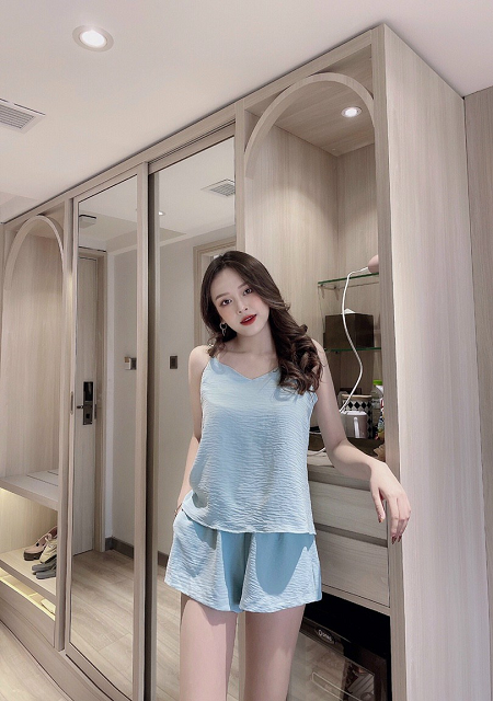 Sử dụng chất liệu satin mềm mại và rất nhẹ nhàng, kiểu short ngắn phối với áo 2 dây đem lại sự thoải mái nhất cho các bạn nữ mặc khi ngủ hoặc khi ở nhà.
