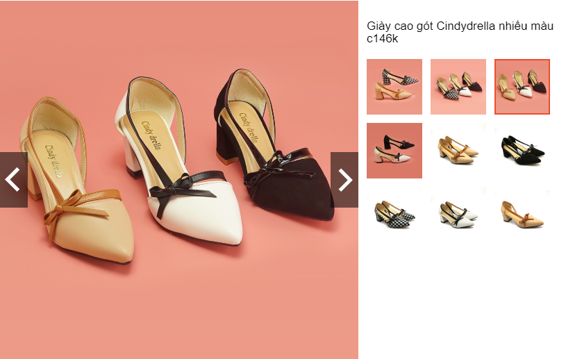 Thương hiệu Cindydrella có các mẫu giày đa dạng màu sắc khác nhau. Bạn hoàn toàn có thể lựa chọn được rất nhiều mẫu giày khác nhau với các kiểu dáng phù hợp với độ tuổi của mình tại đây. Đa dạng mẫu mã nhưng điểm yếu lại là chất lượng, chưa ổn định.