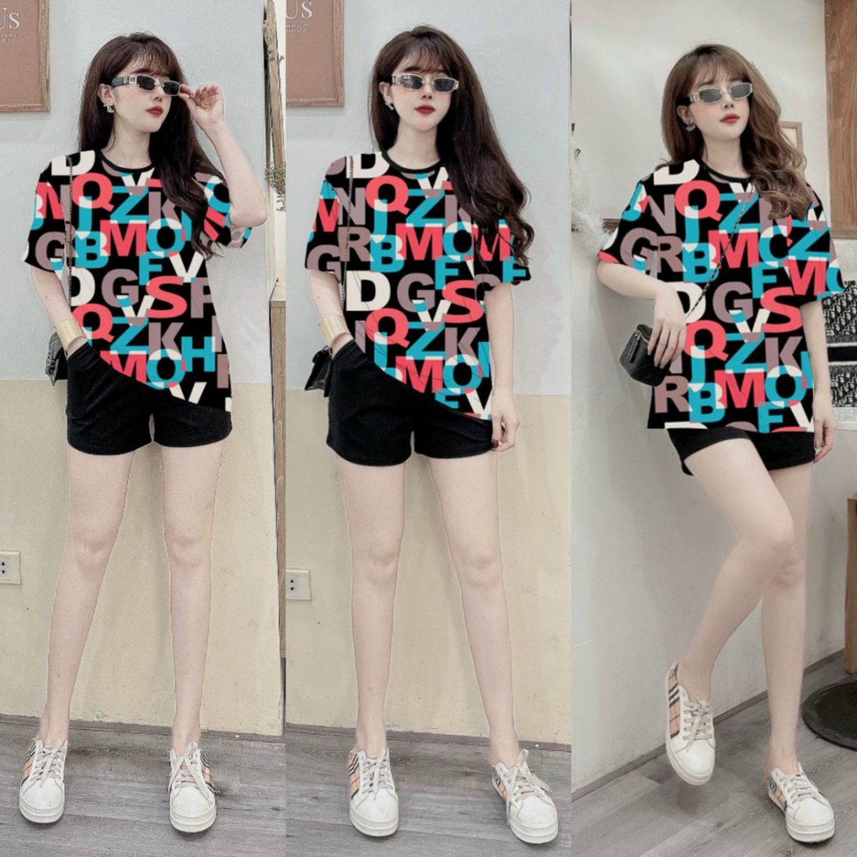 Một sự phối màu rất đẹp đúng không nào? Sự hài hòa giữa kiểu áo thun rộng và kiểu bộ quần ngắn, phối hợp với giày thể thao trắng nhìn rất xinh đúng không nào